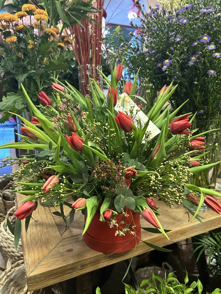 0 Caja redonda de tulipanes