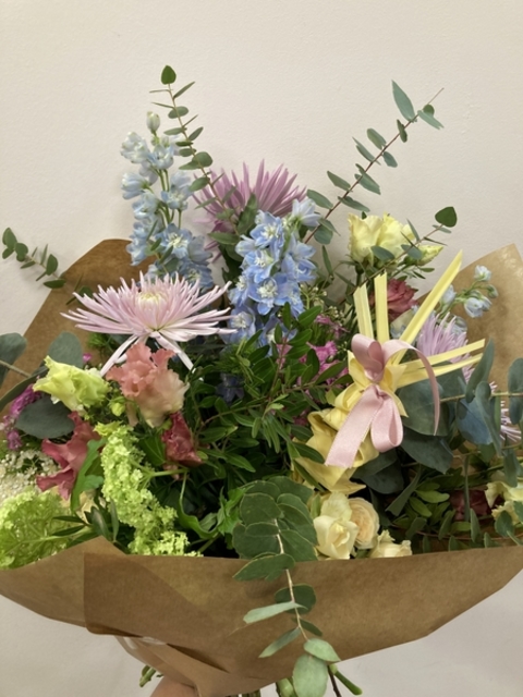 Para regalar en Ramos a tu madrina o padrino, haremos un ramo de flores de temporada, según variedades disponibles y a nuestra elección :) Lo acompañamos de una PALMA, tejida artesanalmente y con todo el mimo :)